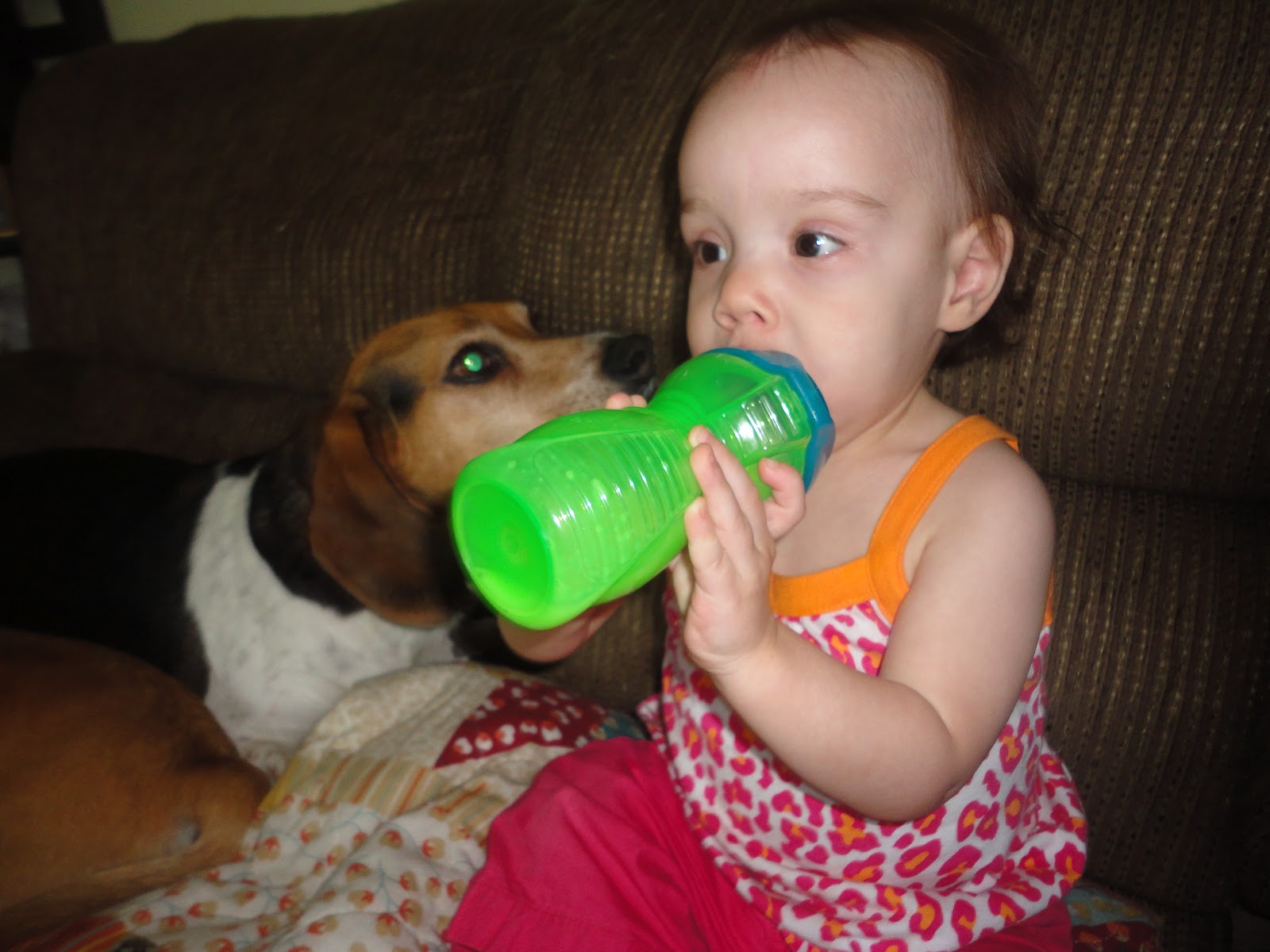 With a little persistence (and about a half a bag of yogurt melts with which to bribe her), I did get Daddy's pictures, though. These are for you, sweet husband of mine. Nora and I both love you very much.